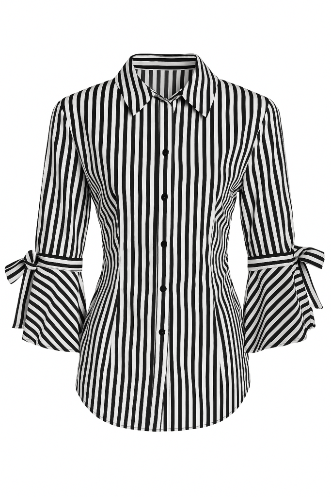 The top? It’s all about those clean stripes and statement sleeves—perfect for work, brunch, or whenever you want to turn heads.
