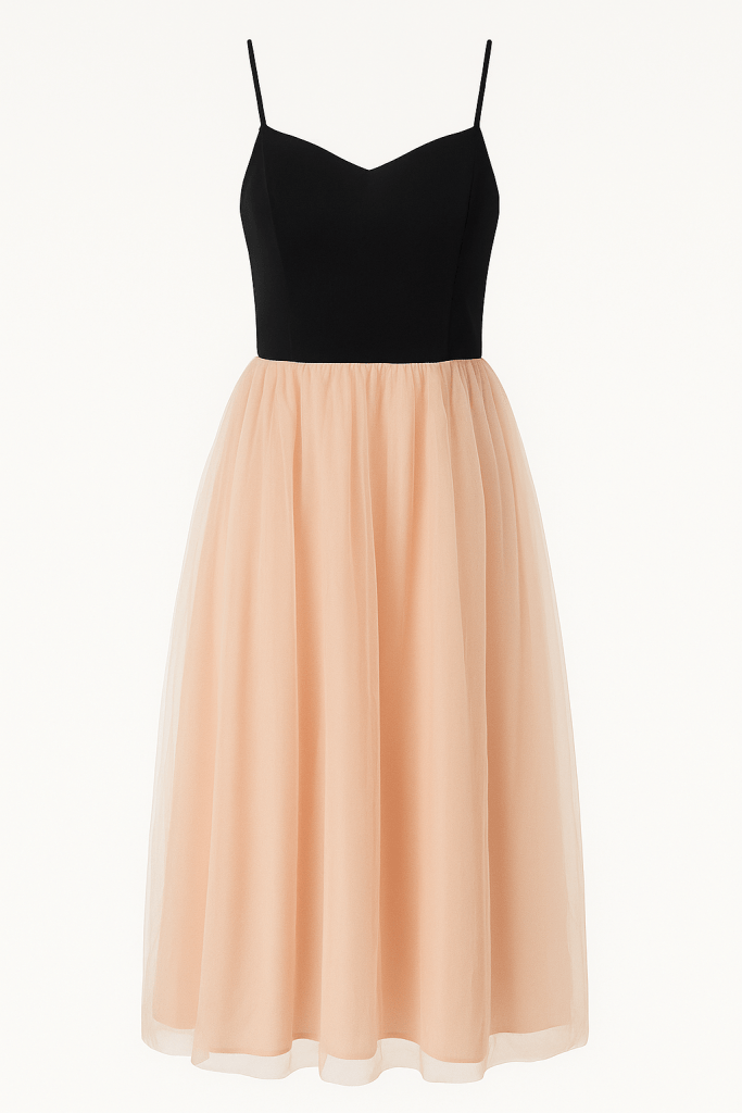 Step into timeless elegance with this stunning two-tone dress from our Ballerina Collection. Featuring a sleek black bodice and a soft, flowing blush skirt, this piece captures the beauty and poise of a ballerina — perfect for twirling through life’s most memorable moments.