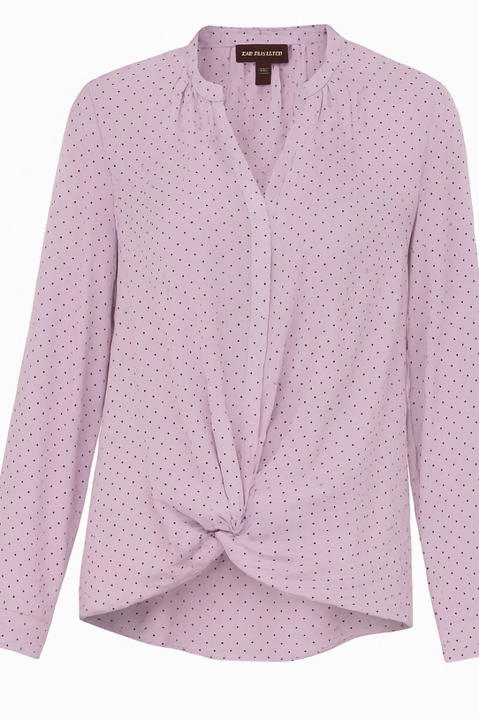 Looking for that perfect blouse that’s versatile enough for work, brunch, and nights out? Say hello to this Lilac Polka Dot Twist-Front Blouse — the definition of chic meets effortless style.